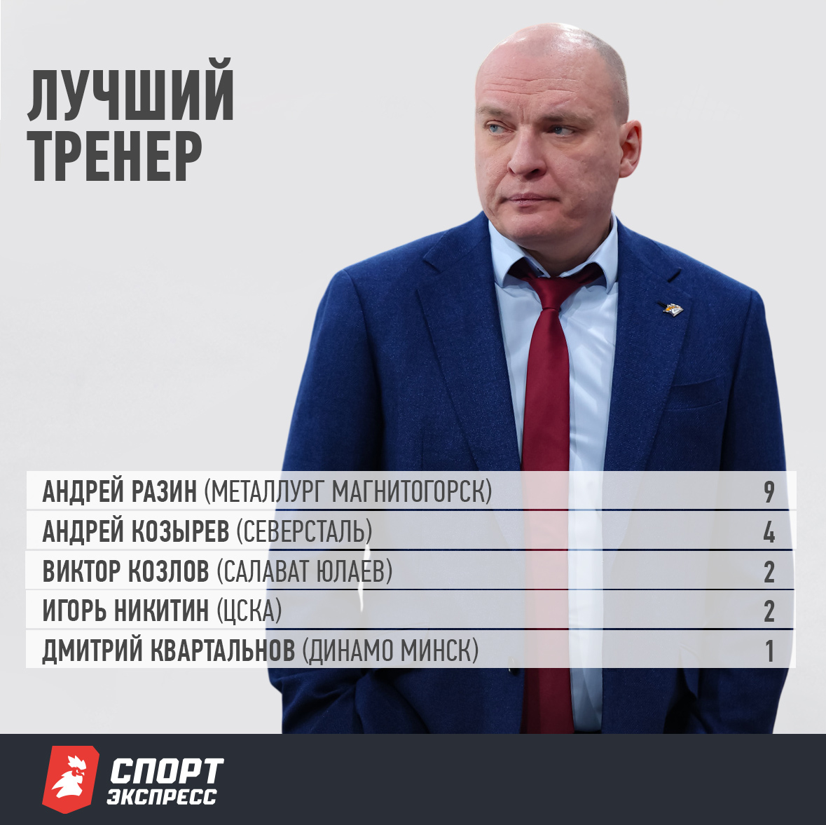 В опросе на звание лучшего тренера КХЛ один голос получил российский наставник минского «Динамо» Дмитрий Квартальнов.