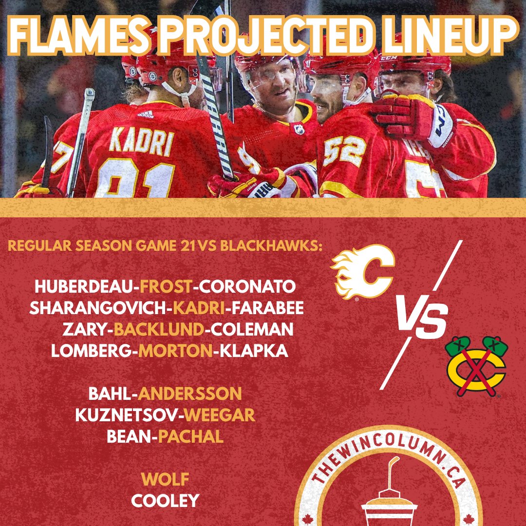 Белорусский форвард Егор Шарангович сыграет во втором звене «Калгари» в матче против «Чикаго». Его партнёрами станут Назем Кадри и Джоэль Фараби.