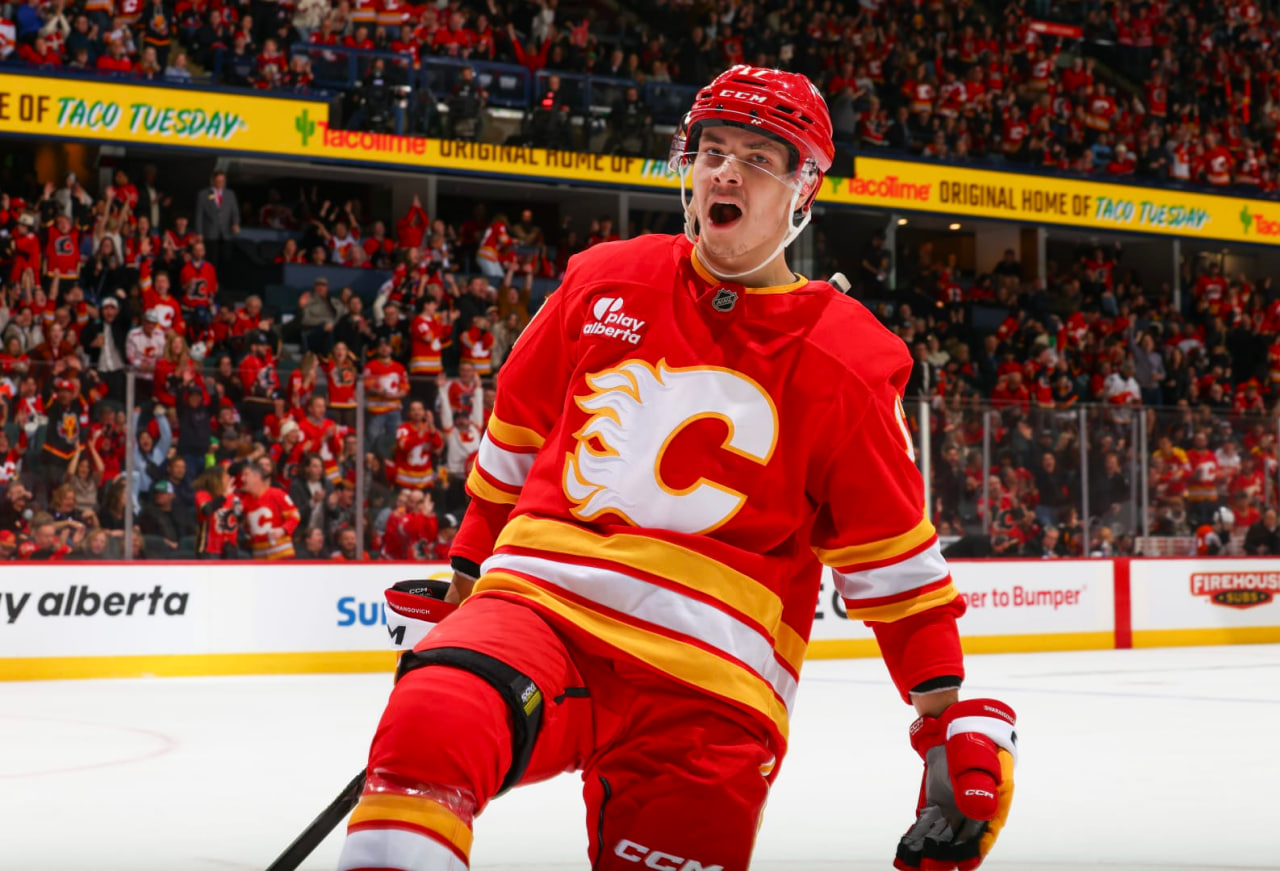 Белорусский нападающий «Калгари Флэймз» Егор Шарангович провёл свой 400-й матч в НХЛ против «Бостон Брюинз», в котором «огни» уступили 1:4.