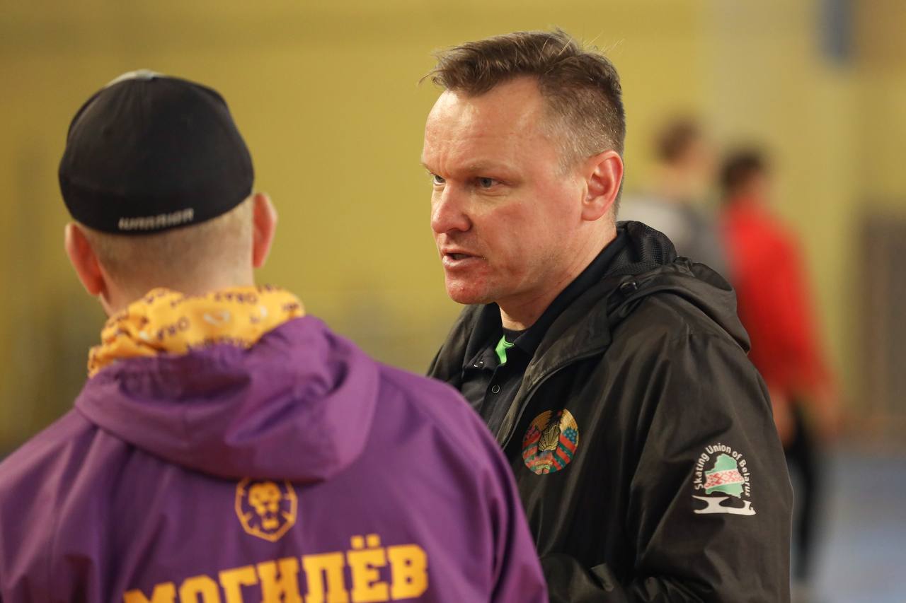 Тренер сборной Беларуси по конькобежному спорту Виталий Роговцев работает с хоккеистами «Могилева».